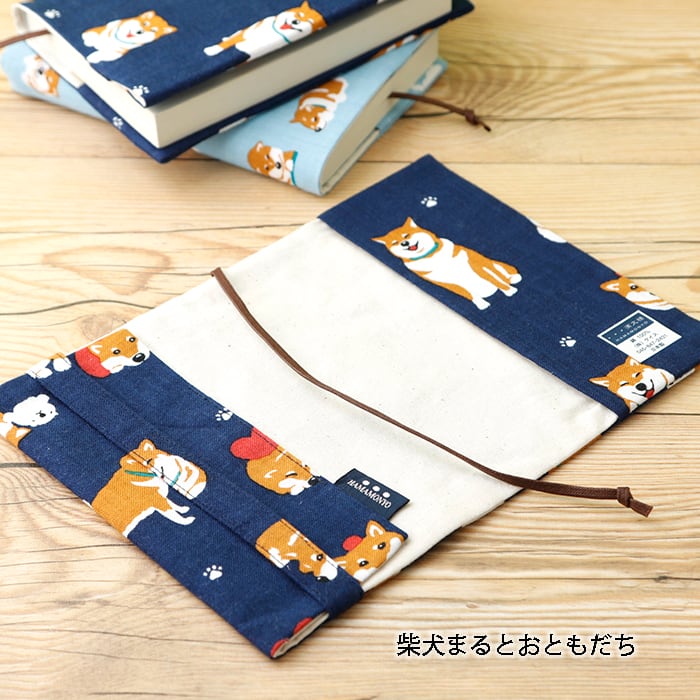 横浜から「新しい和」を発信する、テキスタイルブランドの「濱文様」と柴犬まるのコラボ商品!人気のてぬぐいを文庫カバーにしました。