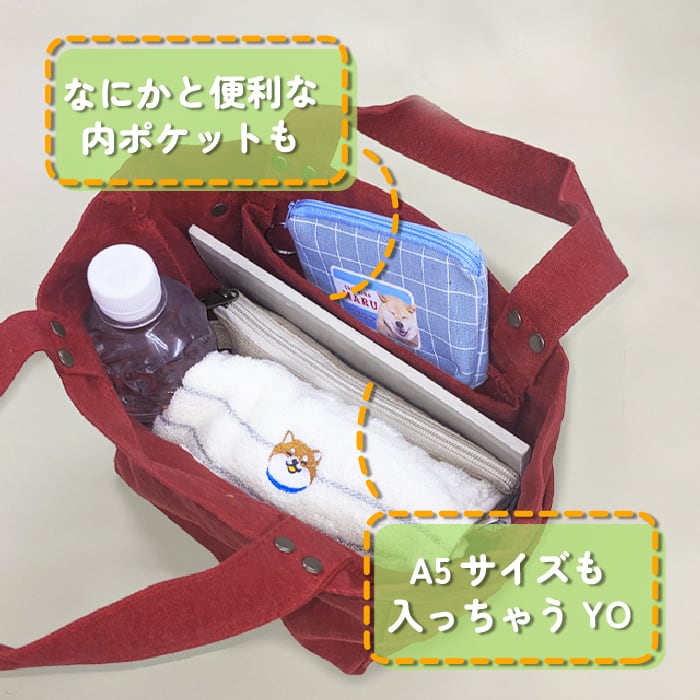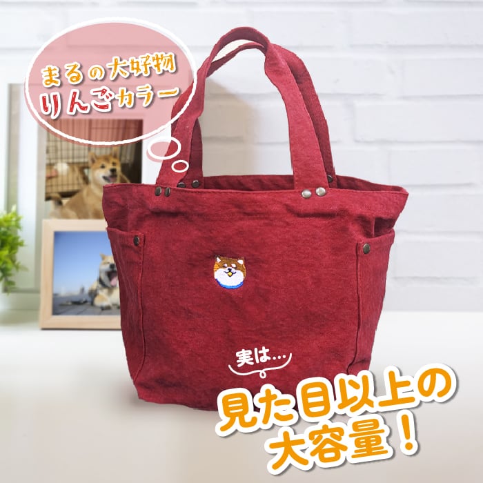 にっこりまる刺繍☆まっかなりんご色トート